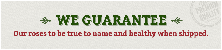 We guarantee our roses to be true to name and healthy when shipped. Planting and growing instructions are included with every shipment. In the rare event that a plant fails, notify us within 1 year of receipt, and you may choose to have a one-time replacement (if available), a credit, or a refund of the price of the plant.