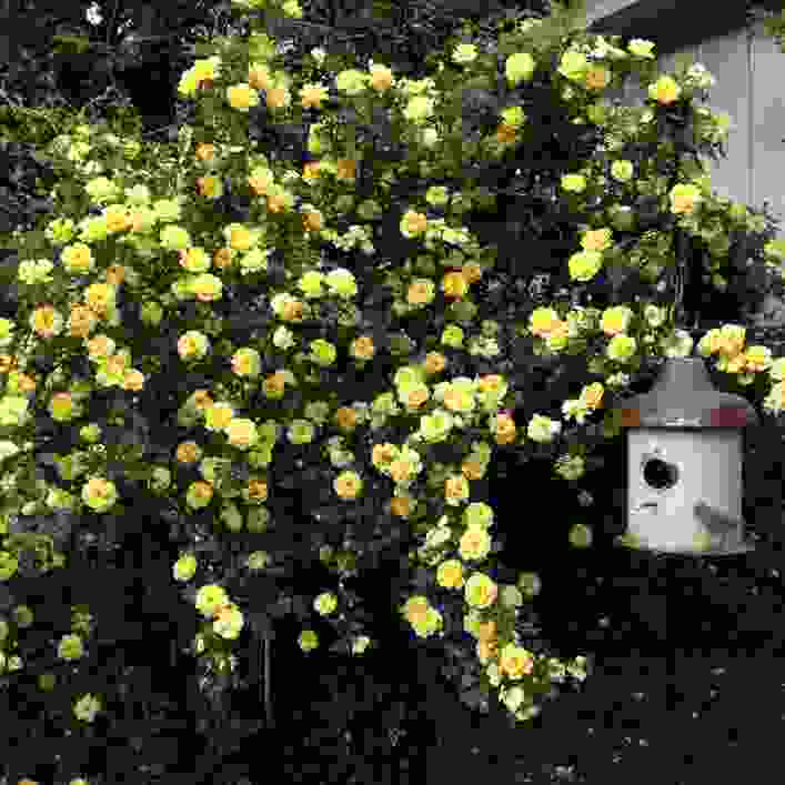A little research revealed that our rose was in fact the Harisonʼs Yellow Rose — a chance seedling by George Folliott Harison, a NYC attorney, who created this rose in his Manhattan garden in the 1830s.