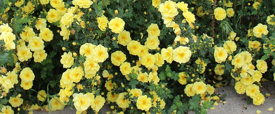 This deep yellow rose is a cultivar of Rosa Foetida. Foetida is Latin for “having a bad smell,” but I can assure you that Harisonʼs Yellow does not have a bad smell. In fact, to me it smells like honey in the afternoon sun.