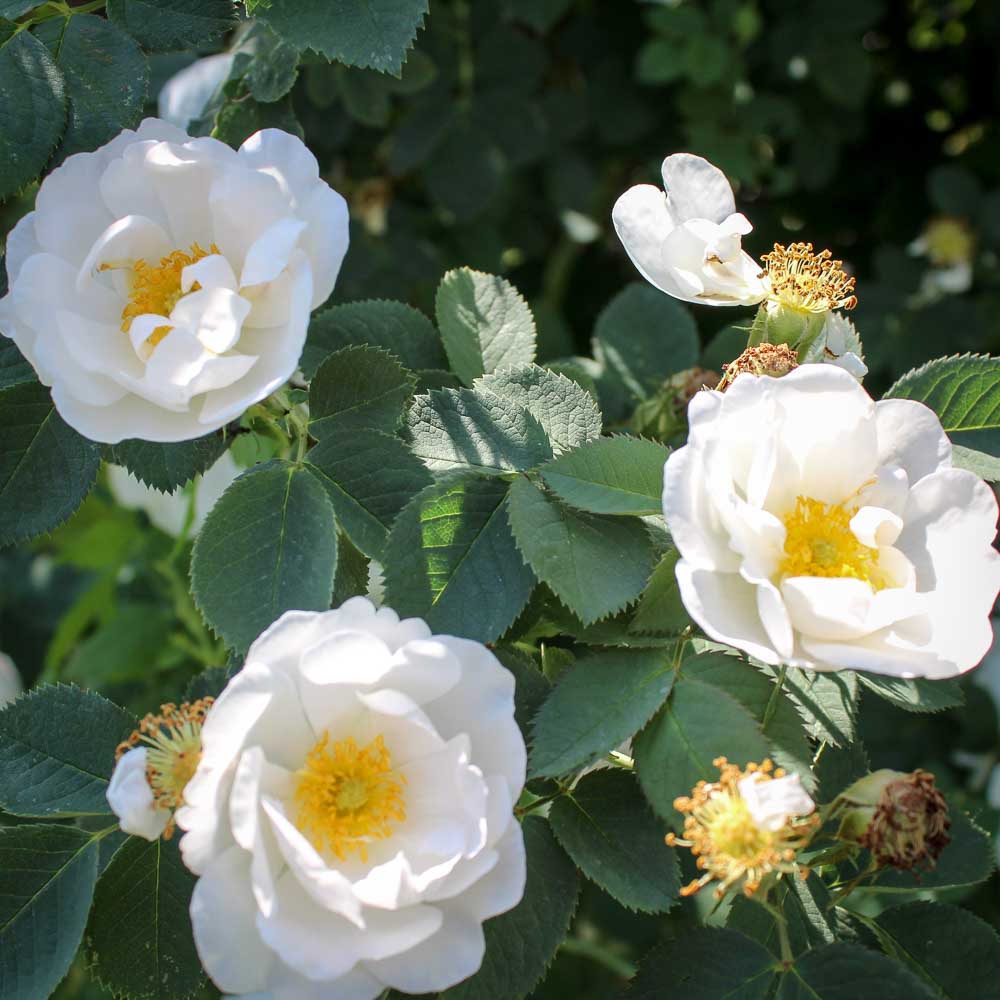 The White Rose of York is generally considered by scholars to be Alba Semi-plena. It is know as the oldest of the Alba roses that emerged in northern Europe and the United Kingdom and was derived from crosses between Rosa canina with Gallica and Damask roses. Alba roses are known for their arching sprawling habit, beautiful layered flowers of soft pink and pure white, and interesting green gray foliage that almost looks blue. The earliest “known” discovery date that I have found for Alba Semi-plena is 1623 but it is very likely that the variety was present in England in the 15th century. One of my favorite customers, and a noted history buff, is adamant that the true identity has to be Rosa canina itself. The flower of Rosa canina is a single (5 petaled) flower and in theory would be even older than Alba Semi-plena.