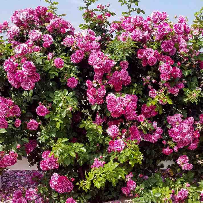 Adorn your garden with the bold stripes and vivid hues of this exciting new climbing rose. Borne in medium-sized clusters, the unique medium-large, petals of magenta, pink and white stripes are combined with a subtle fruity scent. This robust and fast-growing beauty creates an enchanting atmosphere while promising a low maintenance, repeat blooming display.