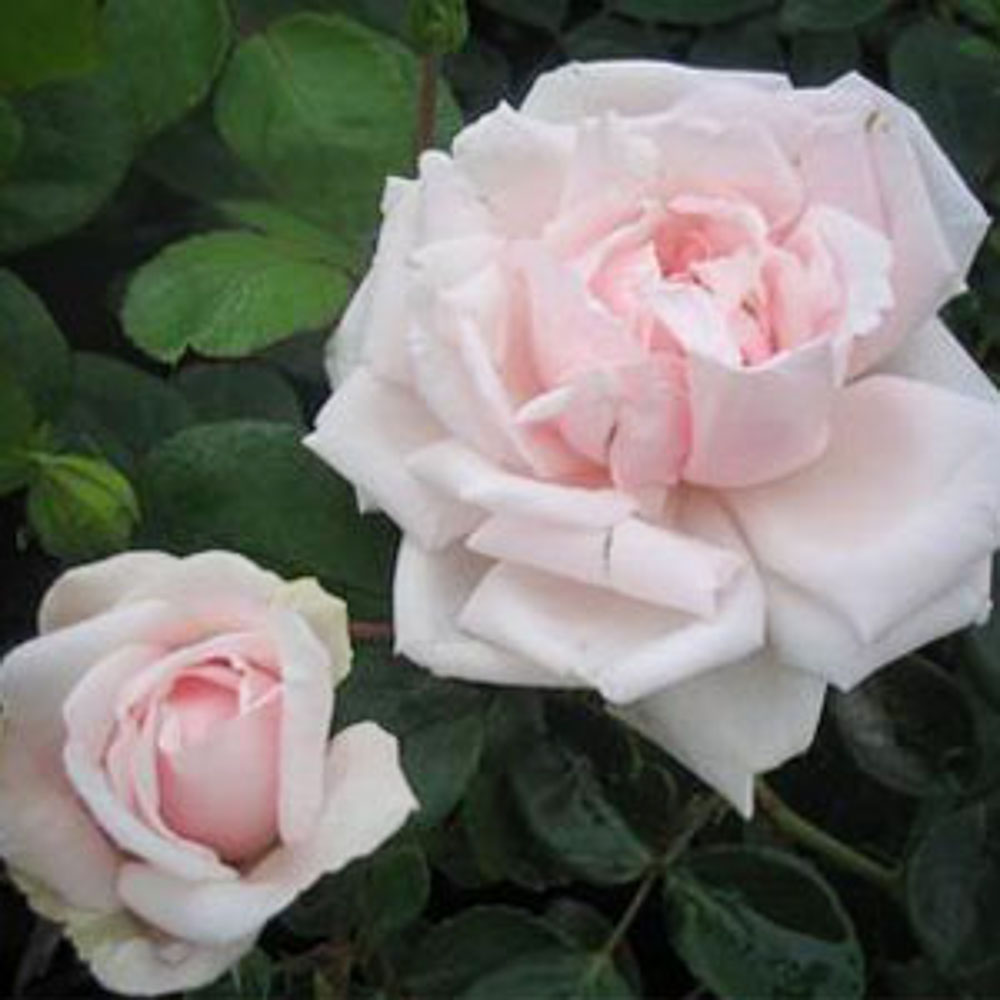 A wonderful rose with blooms a silvery pink that is different from other pink roses. It is a classic. Pairs well with dark blue or violet clematis.