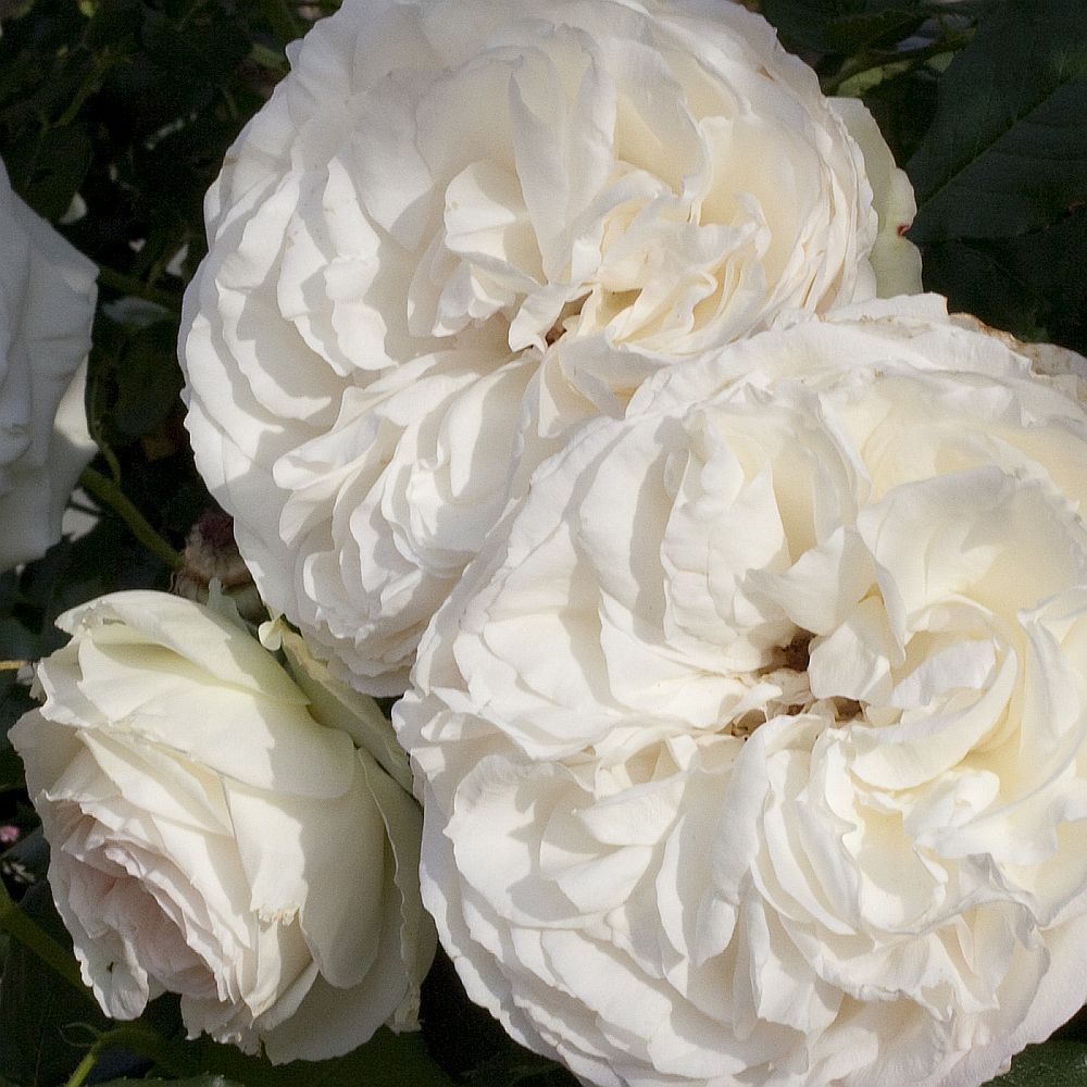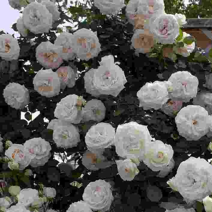 Old-fashioned, white flowers cover this vigorous climber from head to toe in the spring and throughout the summer months. Flowers are contrasted nicely by dark rich foliage. The growing behavior, plant habit, disease resistance and repeat flowering patterns are exactly the same as Eden. It will show hints of pink in cooler weather.