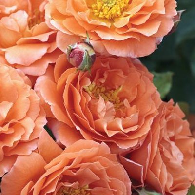 This tidy floribunda produces tons and tons of old-fashioned salmon-orange double blooms all summer. The blooms are cupped, mildly scented, and excellent for cutting. Rich dark green and glossy foliage adds contrast and disease resistance. Loves full sun and is great in containers.