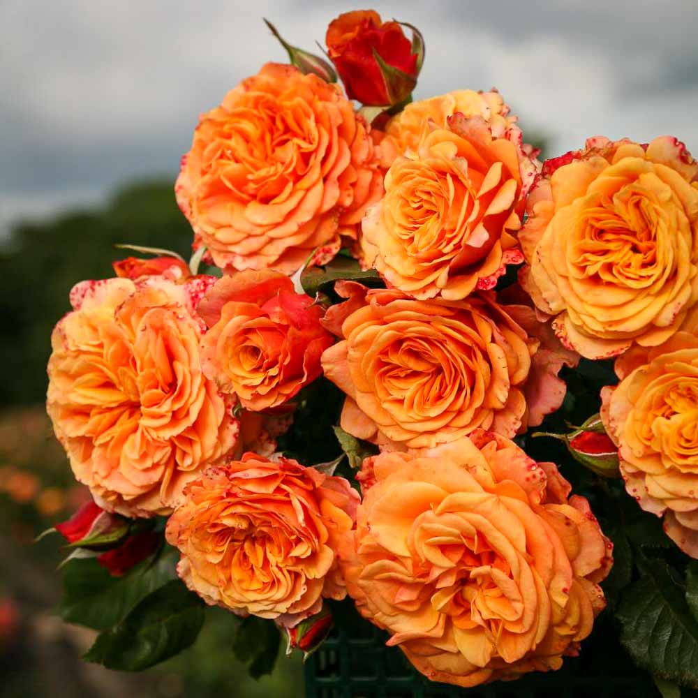 The blooms last forever on this rose. One of them lasted over a week! The petals are ruffled and change colors, I never saw any bright orange color on mine but peach, soft yellow, buff, and pink.