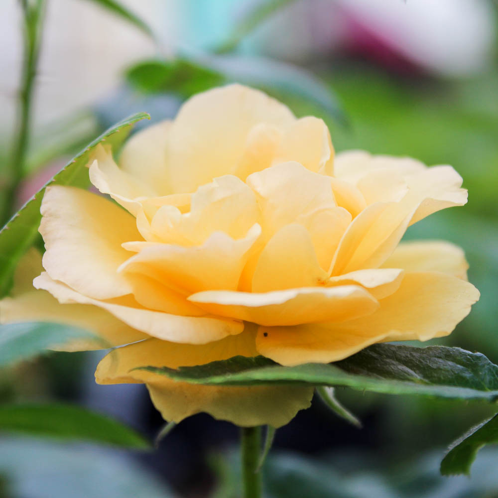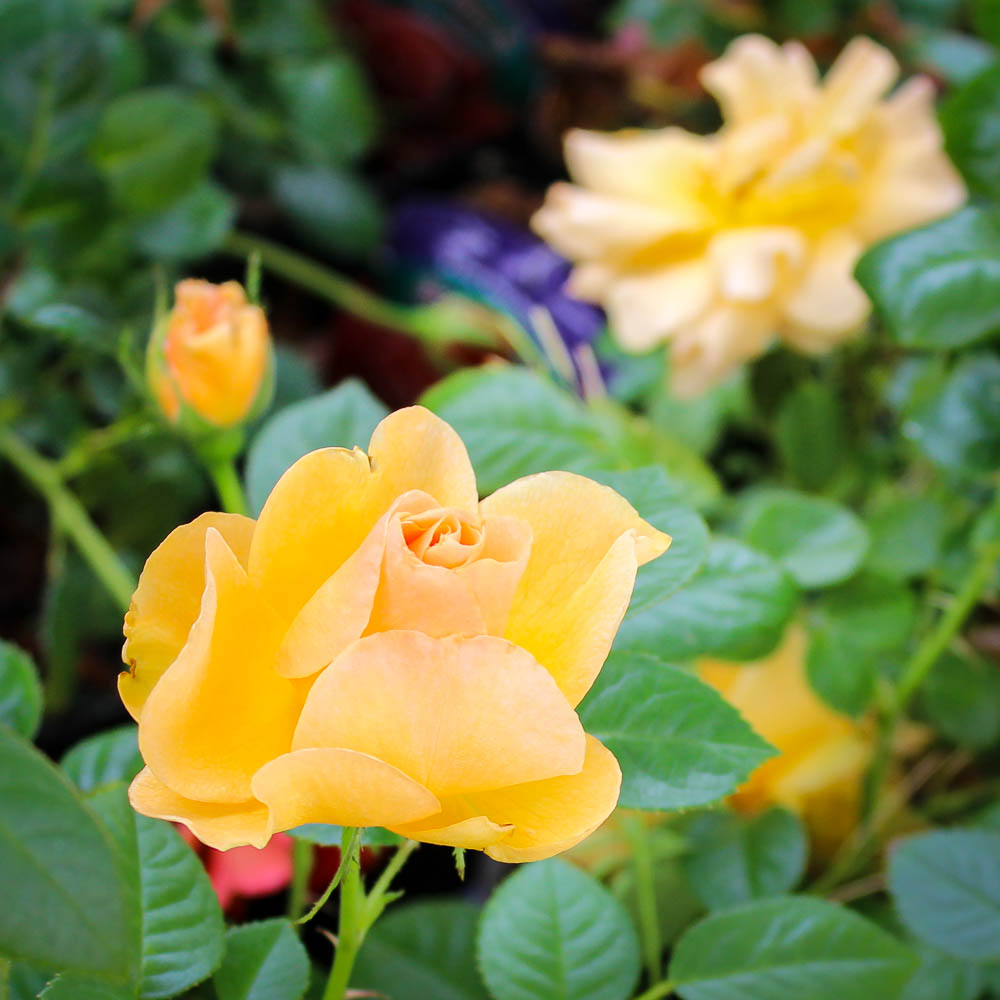 Golden yellow double blooms with light fruity fragrance cover this shrub all season. A sport of ‘Livin’ Easy’, it has the same easy care and bright green foliage. Reaches 3 to 4 feet tall and wide.