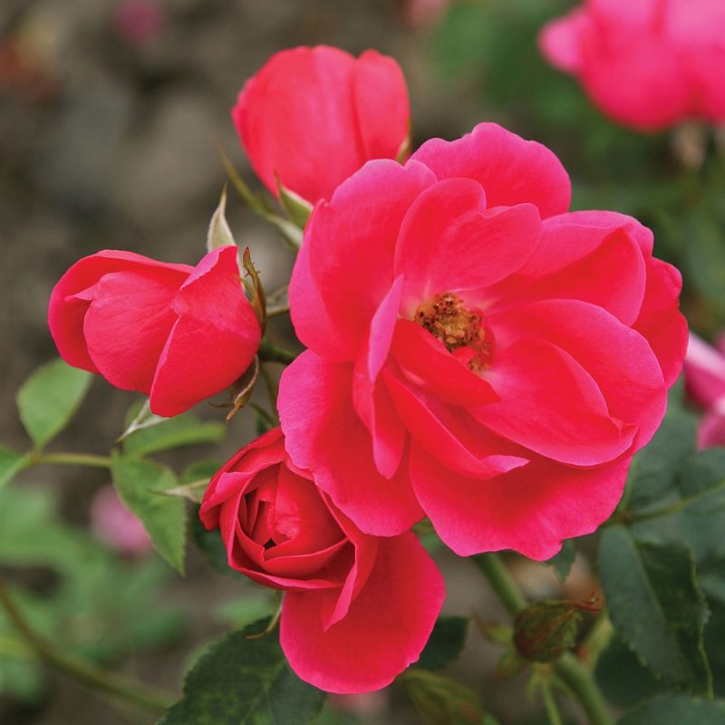 Features deep vibrant pink medium-sized flowers. A prolific bloomer with glossy green foliage. Easy to grow, this exceptionally disease tolerant shrub is a carefree choice for gardens and landscaping.
