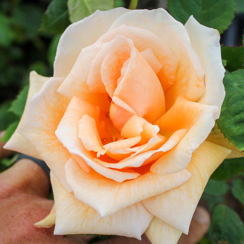 Very large, high centered blooms of blended orange and yellow exquisitely adorn this upright olive green shrub. Like many of Dr. Buck’s gems, Gentle Persuasion in hardy to zone four and disease resistant. It’s fragrance is sweet and color intensifies in cooler weather.