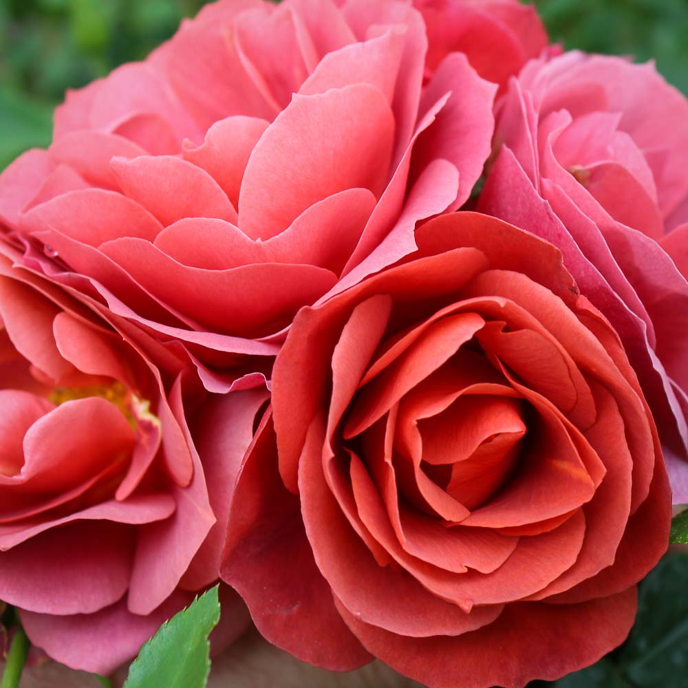 It is hard to exactly pin down Hot Cocoa’s unique coloring, pointed buds of deep rust unfurl to reveal a chocolate haze of velvety smoked tones that can even take on a purple cast. The blooms are large and double in form with a mild fruity fragrance. Repeat blooming occurs throughout the season on a bush with glossy green foliage.