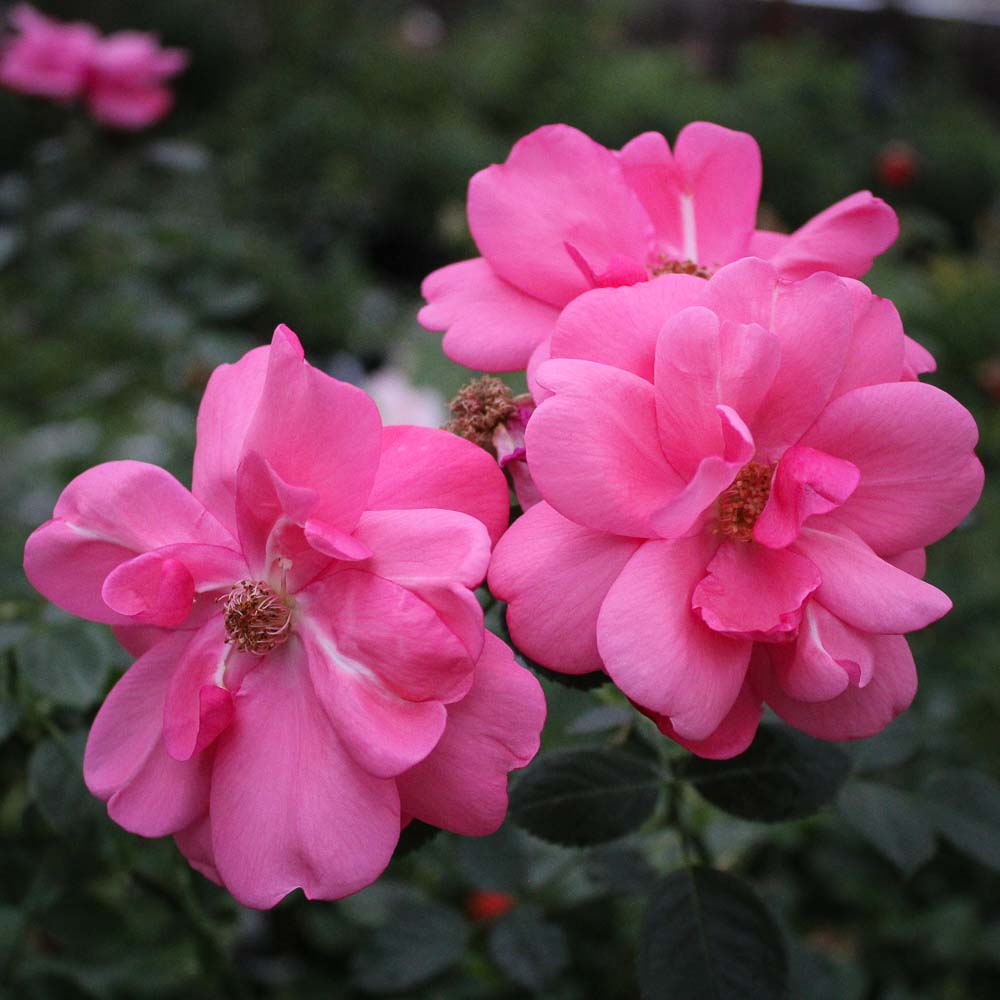 Masses of shimmering, coral-pink, semi- double blooms are lightly fragrant and repeat all season on this AARS award winning rose. Dark green, glossy foliage is very disease resistant. Reaches 3 to 4 feet high and wide with a rounded habit – perfect for a shrub border or hedge.
