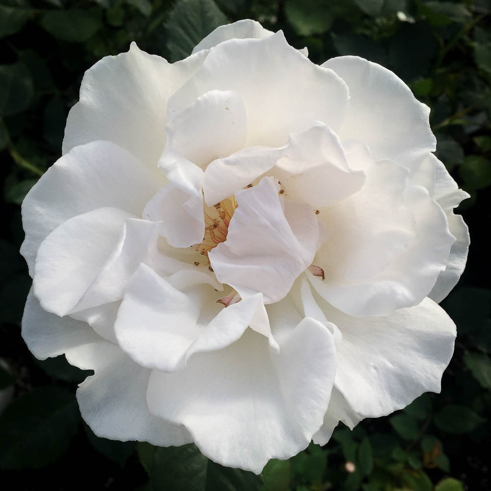 Satin-white, double blooms are borne in large clusters continuously from spring until fall. Margaret Merril is renowned for it’s exceptional spicy, citrus fragrance. Deep green foliage fills a stately, upright shrub reaching 4 feet in height with a spread of 3 feet.