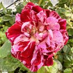 Not just every flower, but every petal is a varying masterpiece of amazing purple, lavender & white stripes, streaks, flecks, dots & dashes. Plus there’s a powerful perfume of citrus blossom & rose. She’s a little fussy to grow as roses go. But each blossom will convince you to keep up the effort. Best flower size & purple color in cooler conditions.
