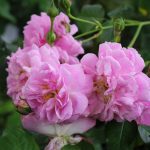 The clusters of double, ruffled blooms are shades of pink with a tint of lilac, enhanced by a strong fragrance. A vigorous shrub with glossy green foliage, 5 to 6 feet tall and wide.