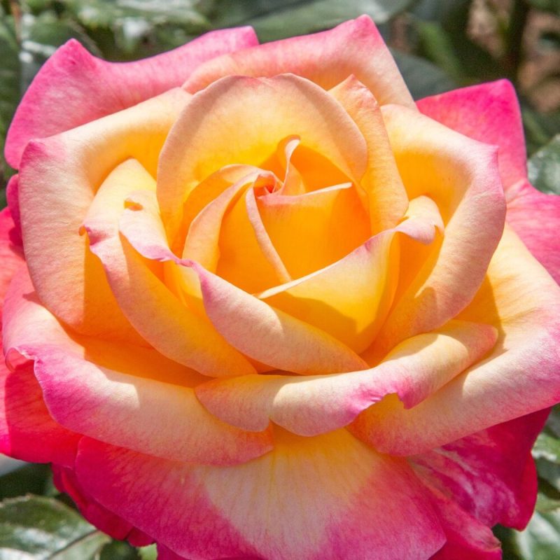 Enchanted Peace is a compact, disease resistant, bi-colored Hybrid Tea Rose. This rose is a great improvement on the parent rose while keeping the classic shape and provides a great fragrance throughout the season. Its bloom color contrasts beautifully against dark green, very glossy foliage.