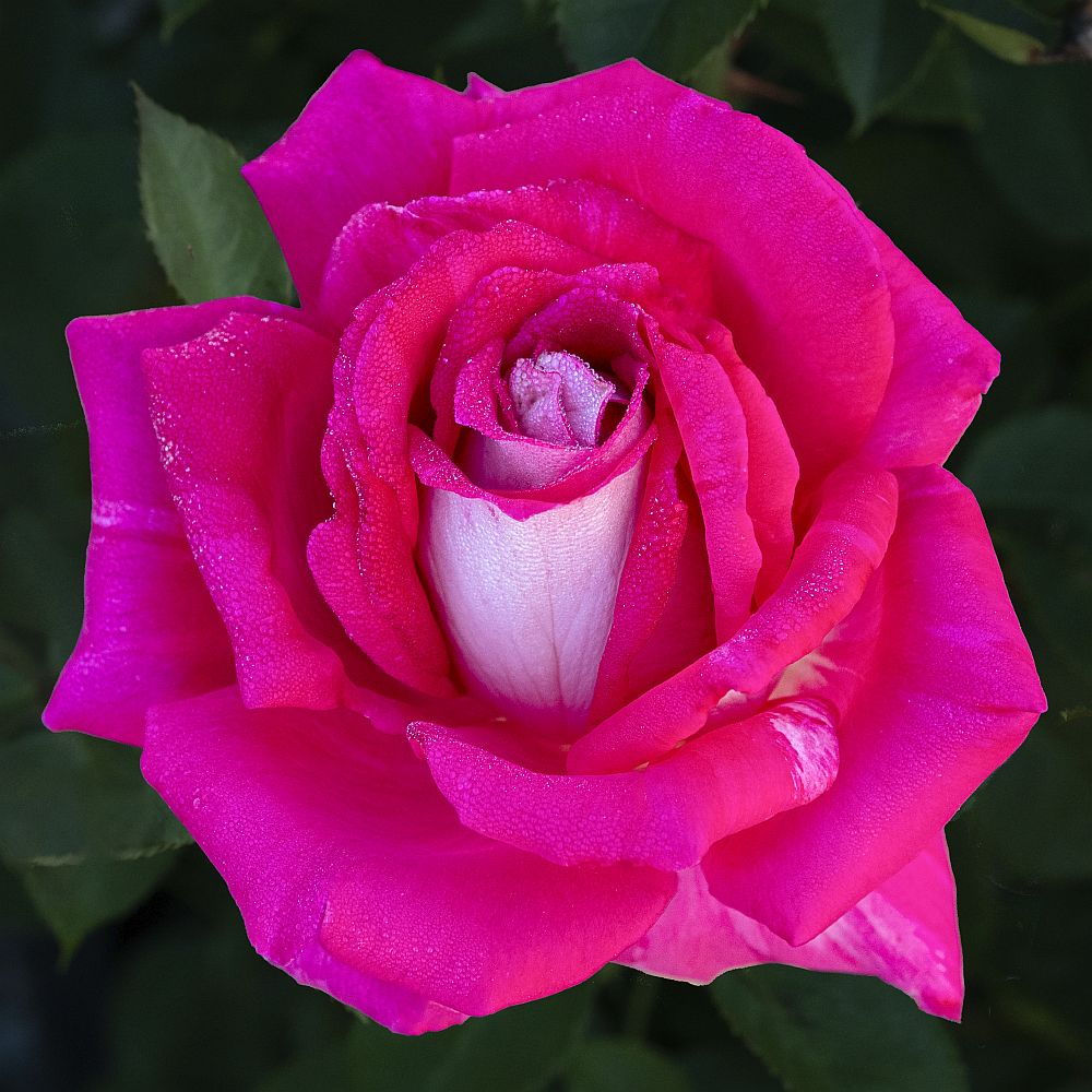 Picture Perfect is the total package, combining the performance of a modern hybrid tea rose with classic traits of an earlier era. Spiraling pointed buds slowly unfurl to reveal eye-catching hot pink blooms that are contrasted by a cream colored reverse. Blooms have a moderate tea fragrance and have excellent vase life, making Picture Perfect a great rose for arranging and as a cut flower. The rose bush itself has a stately and upright shape combined with strong disease resistance.