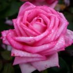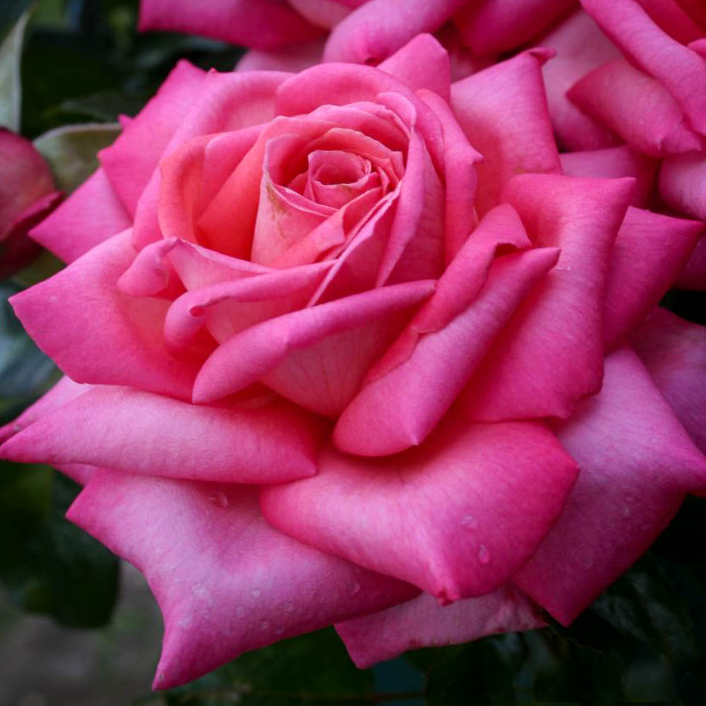 This two-tone pink hybrid tea rose has very large, long lasting, fragrant blooms ideal for cutting. The rose bush has abundant shiny green foliage. Performs well in rainy climates.