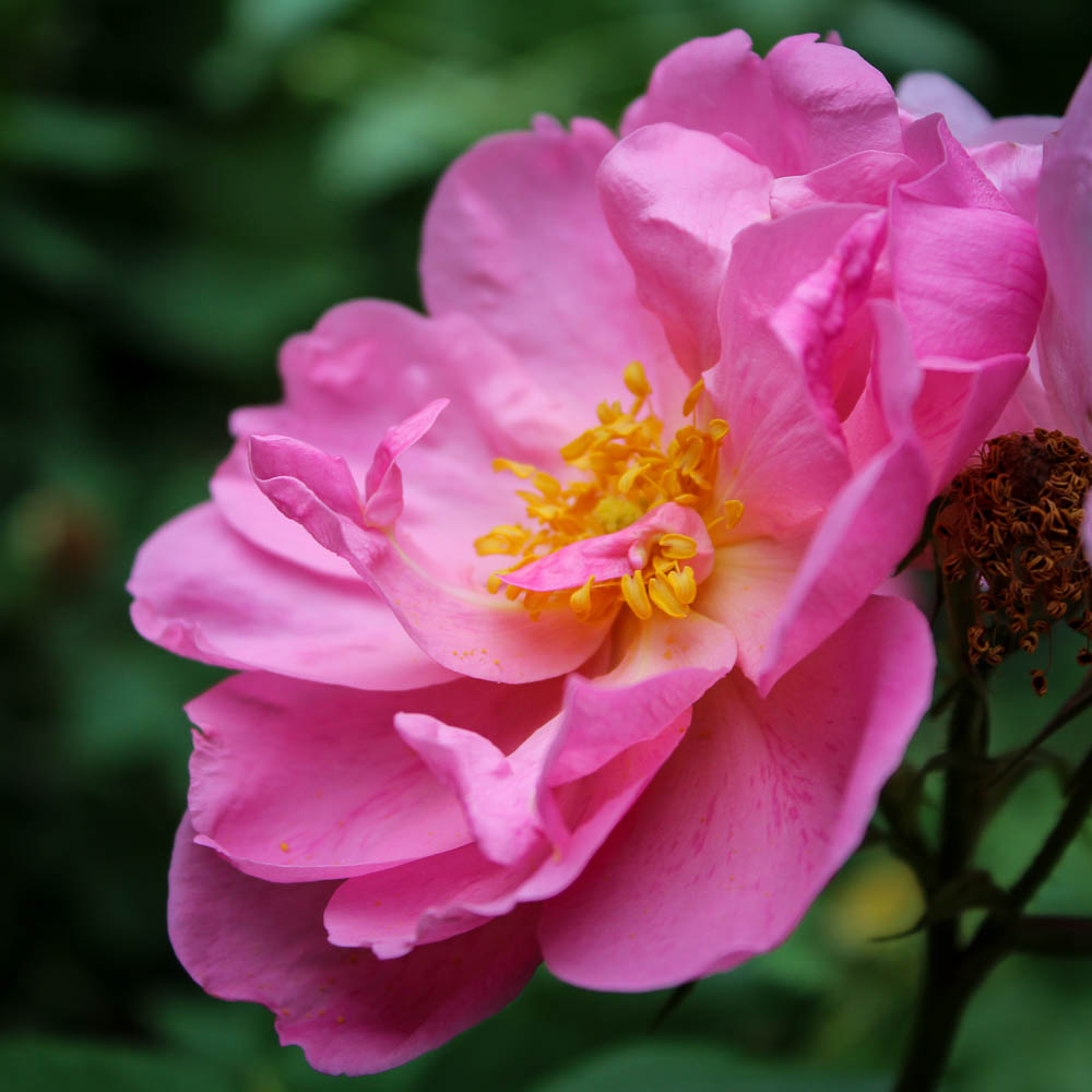 Simplicity in the form of this rose is absolutely gorgeous! Blooms most of the summer, extremely winter hardy in SE Montana, and has a very wonderful scent- growing on an obelisk trellis in the middle of my peonies, east side of the house, she keeps produces color long after the peonies quit- she’s a keeper 🩷
