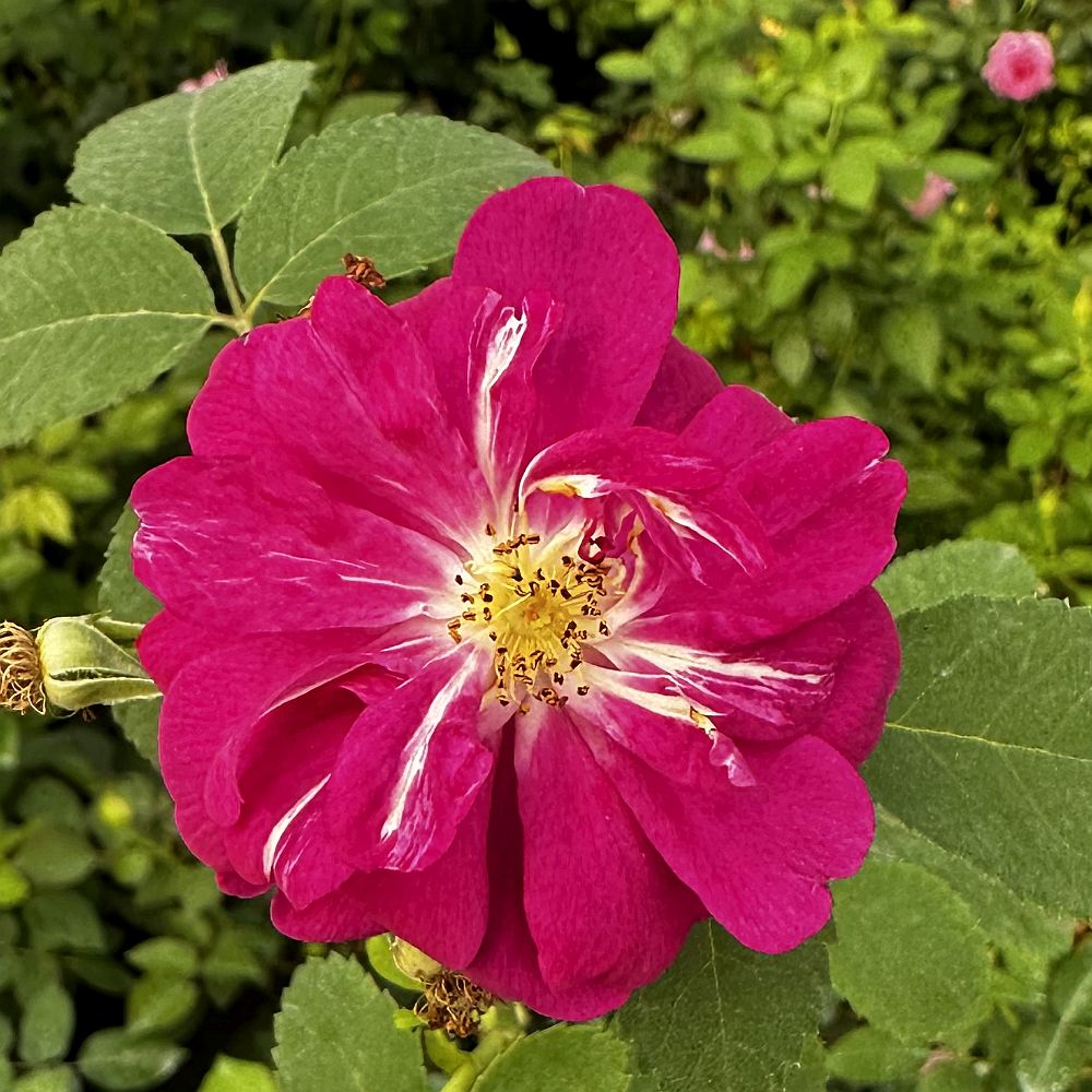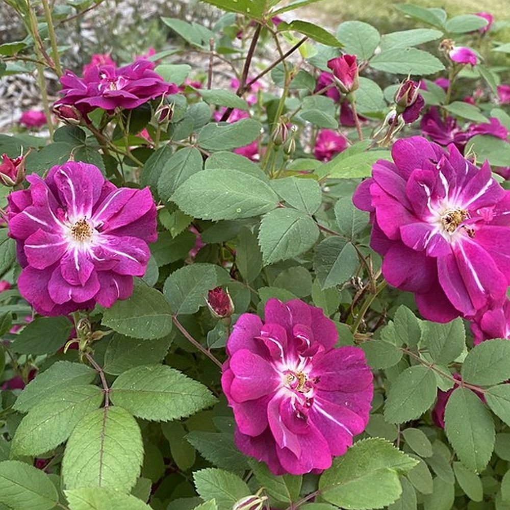 Dr. David Zlesak is a Professor of Horticulture and rose breeder at The University of Wisconsin River Falls. Needless to say, cold hardiness is critical to his breeding program and we are the beneficiaries of his hard work. Catherine Guelda is intriguing shrub that combines zone 4 hardiness with a easy free growing habit and black spot resistance. Blooms are a mauve purple blend that are often highlighted by a white stripe down the center of the petals crating a unique look.