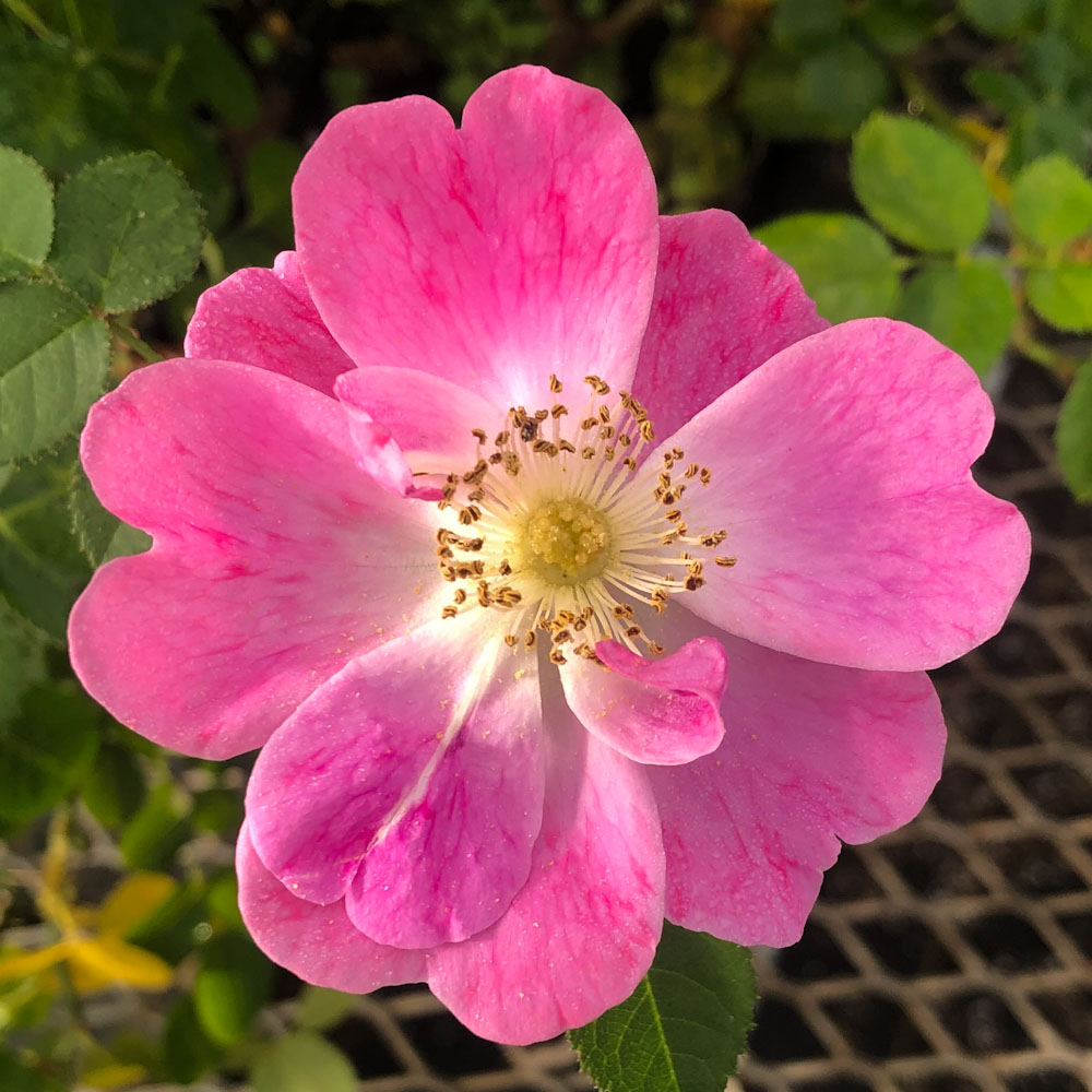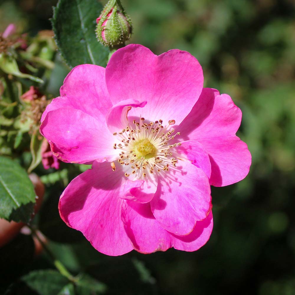 Find the perfect spot and let this lesser known Sweet Briar take over. Greenmantle can reach 12 feet but has a graceful arching habit. Brilliant single, deep pink flowers with golden stamens cover the plant in early summer. Fragrant foliage.