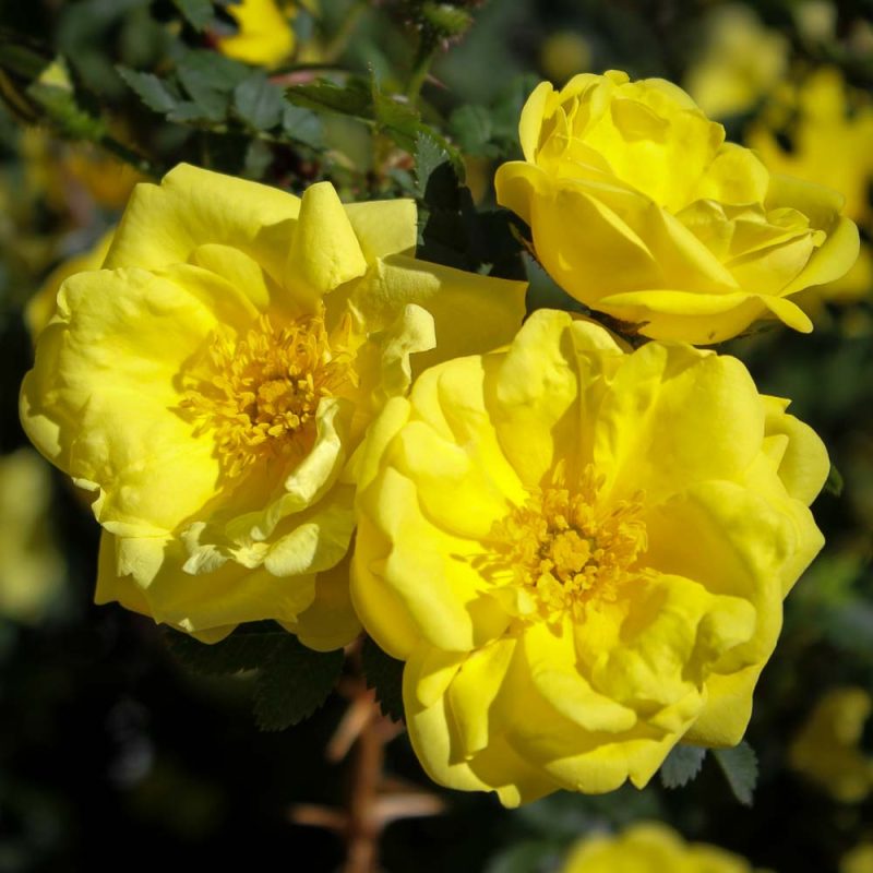 This rose has truly reached legendary status. From it’s haphazard origins in Harison’s New York City garden, to its well-chronicled journeys west with the Forty-Niners, Harison’s Yellow is truly an American icon. It is still found on old homesteads along the Oregon Trail, surviving with little water and care. Harison’s has numerous aliases including the incorrect spelling “Harrison’s Yellow,” rosa harisonii, the Oregon Trail Rose, Hogg’s Yellow, Yellow Sweet Briar and the Yellow Rose of Texas.