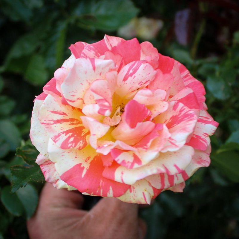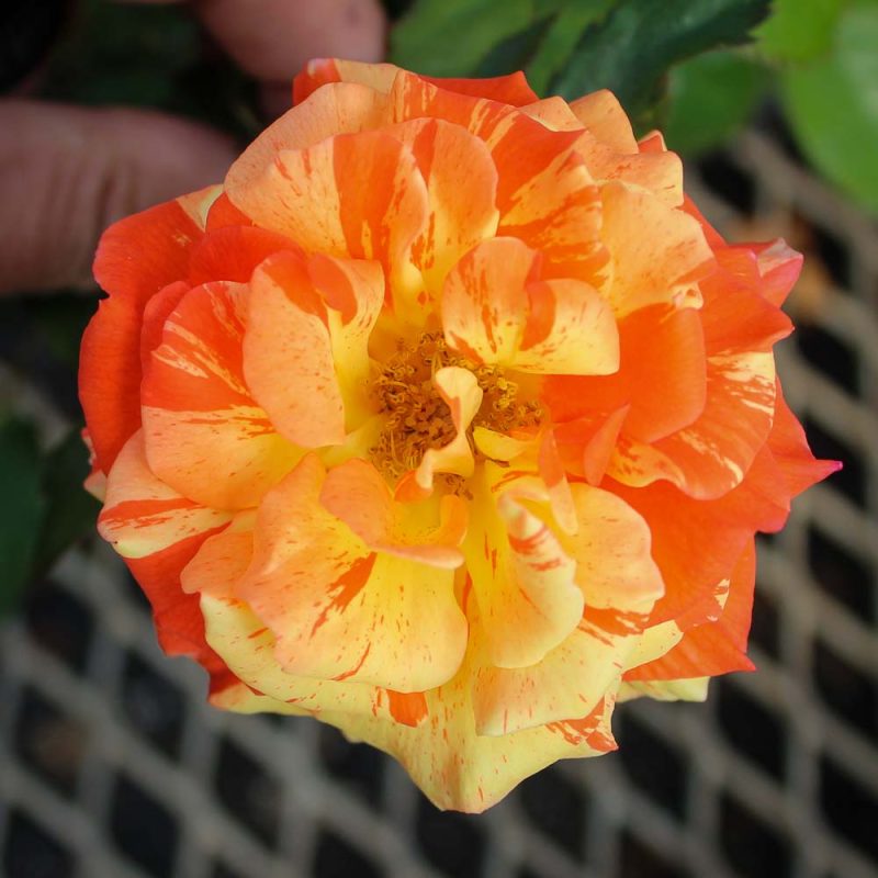 Oranges ‘n’ Lemons’ blooms feature stripes of pure yellow splashed onto bright orange will stop even the most finicky rose lover in their tracks. Mahogany red new foliage shows up all year long and maturing to a very deep green. This vigorous bush has a fountainous habit that can be trained as a climber in milder climates. More blooms in cool weather.