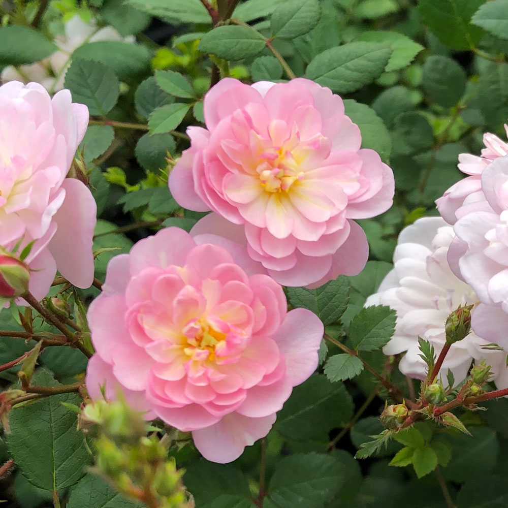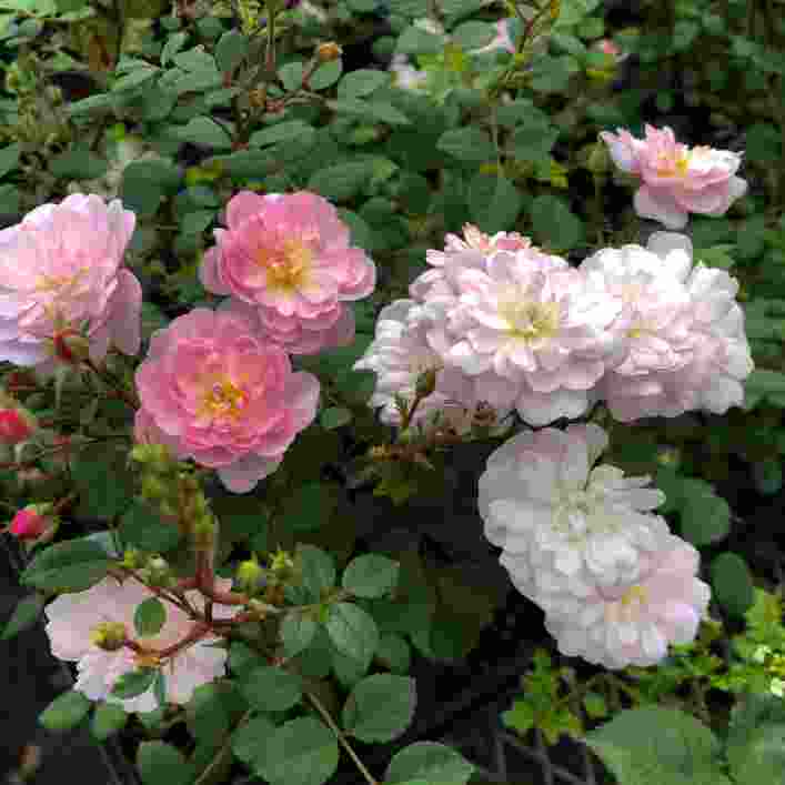 I took a chance on these a few years ago. Loved them so much I moved to a new house and dug them to take with me (in the middle of winter in Colorado!) They transplanted well and are thriving! They bloom a ton, and the scent wafts. They do lose their pink coloring and look mostly white quite quickly but are still pretty. Very few thorns.