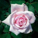One of my most favorite roses. Has large blush pink blooms and is very disease resistant and blooms constantly. Makes a large bush, so needs room.