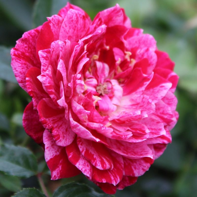 Streaks and stripes of white playfully contrast Candy Sunblaze’s rich red, cupped flowers.  The striping effect persists all season but is strongest in cooler conditions. A vigorous but tidy miniature habit makes for a great container plant or landscape accent.