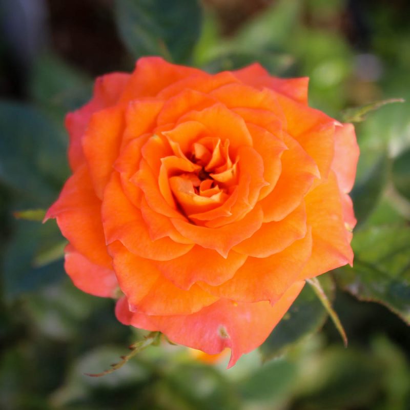 Mandarin Sunblaze has unusually large flowers for its miniature class. The strong bright orange color and vigorous habit make it a favorite Sunblaze Rose.