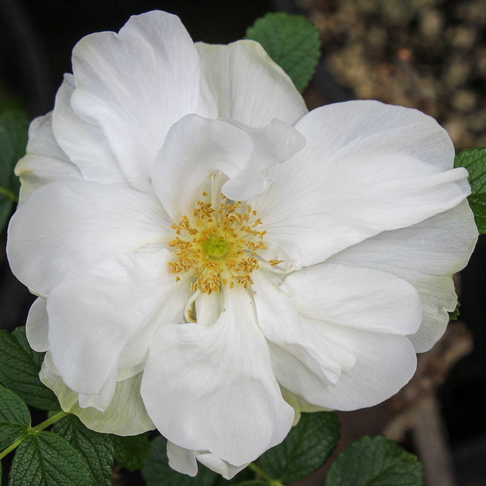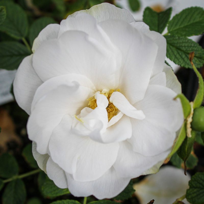 This tough rose has wonderfully fragrant, full white blooms in mid-season with good repeat. Orange hips develop after the flowers fade. Dark green foliage that colors well in autumn on a bush 5 to 6 feet tall and wide.