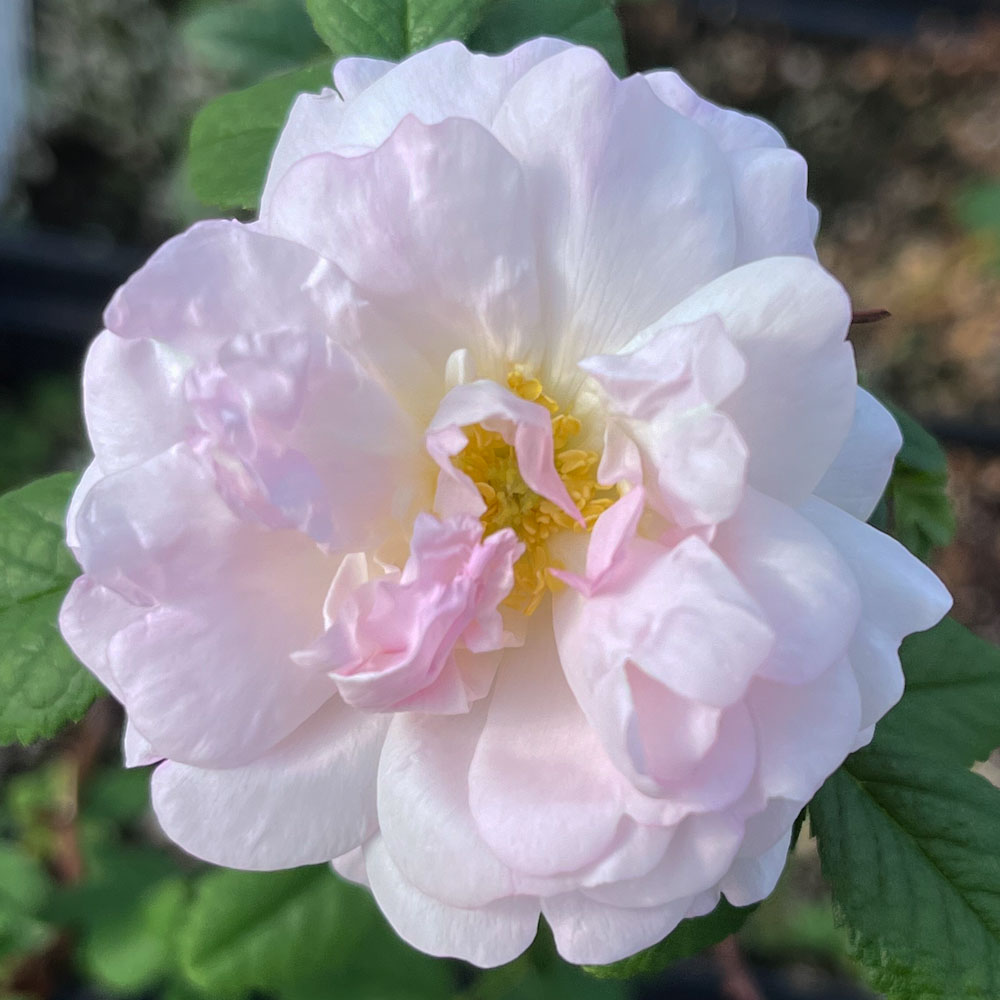 Exceptionally hardy, Mrs. John McNabb is an absolute must for zone 4 and colder gardens. Buds feature hints of pink that unfurl into nearly pure white double blooms with a light but noticeable fragrance. The plant is an upright grower with arching canes.