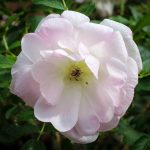I have this rose and it is fantastic. It has more blooms on it each year than all the other roses I grow put together. Blooms in clusters that start out very light pink, turn to pale blush then white as they open. As expected from a rugosa, the stems are beyond prickly. In my yard in part shade it is lush and full and grows fully 9′ tall. Every spring I use a hoe to bend down the tallest branches and tangle them together so I get many more blooms from the horizontal stems instead of a single large cluster at the top. About every 5 years I cut it down to 2′ and let it start again. No loss of flowers and just reigns it in a little. The scent is not like a species rugosa–you have to stick your nose in to smell it. But when it is growing new leaves in the spring or in a summer rain, the foliage smells strongly of fresh apples. Zone 5B Connecticut —- (High Country, I got mine from Suzanne Verrier, and I have pictures to share if you want them that are better than the ones here)