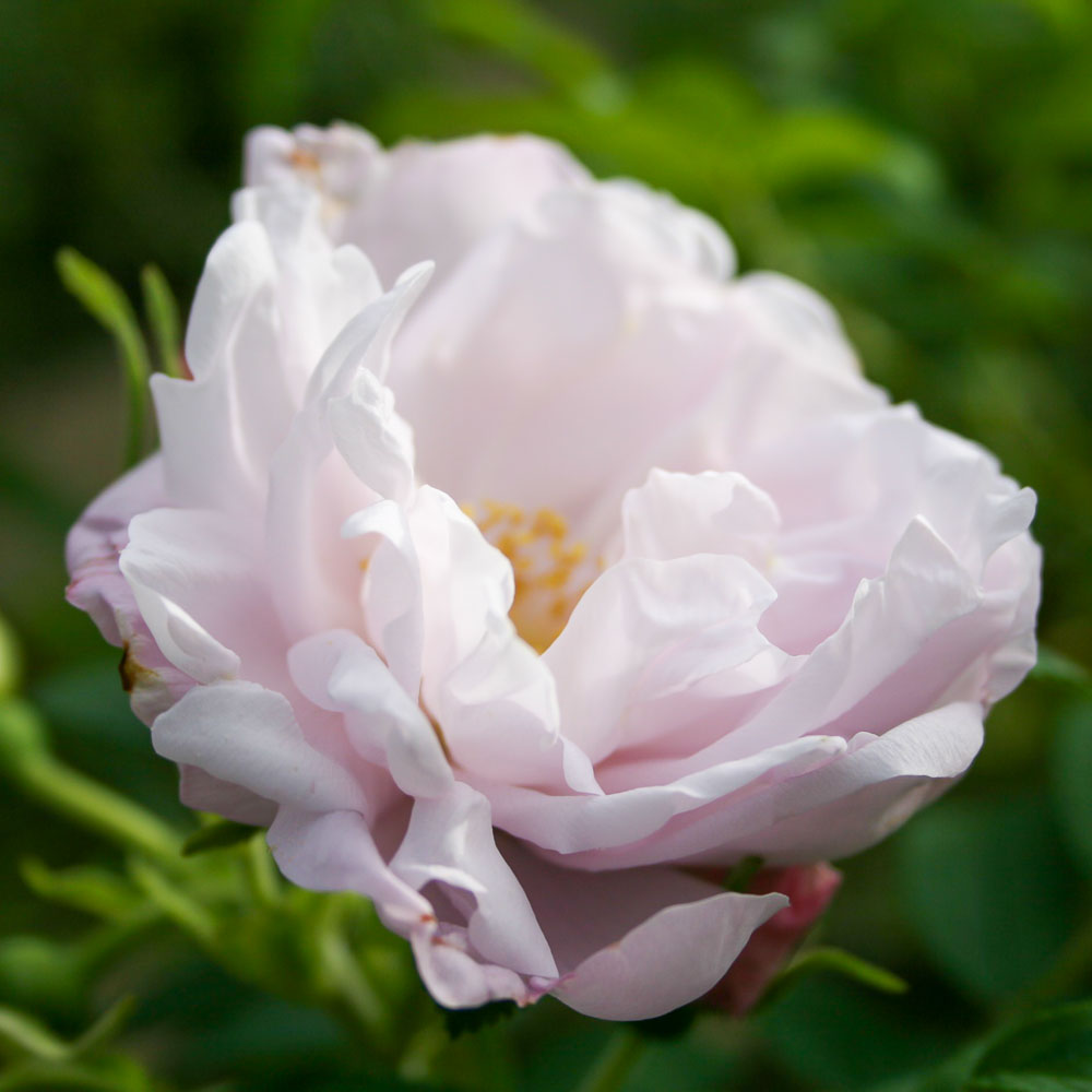 Snow Pavement is tip hardy for me in zone 4 and is a beautiful 4ft shrub that constantly puts on pretty pale colored blooms. I would call them more lilac-toned than pink though. The pale green foliage makes a nice contrast to the very dark leaves on the roses on either side (Lambert Closse and Rose de Rescht) and it’s thorny enough to put in the corner of the yard to deter unwanted traffic.