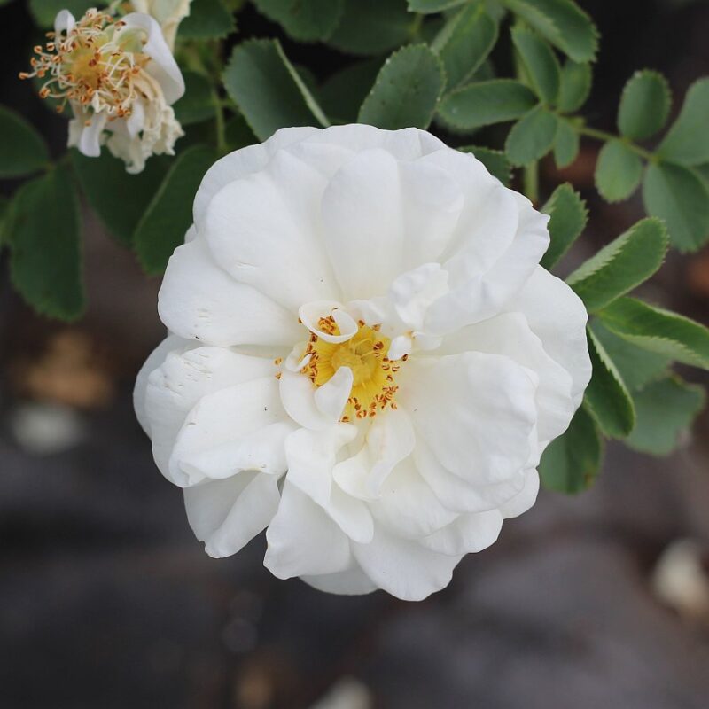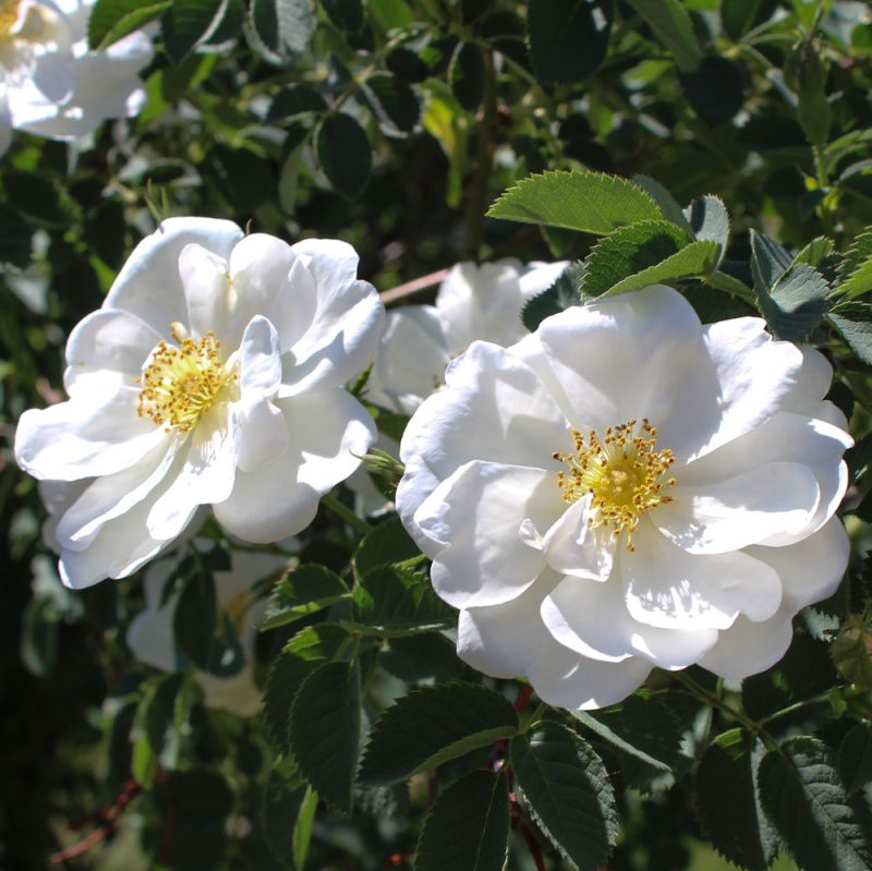 Alba Semi-plena the oldest of the Alba roses and is one of the most historically significant roses you can grow in your garden. It is widely considered to be the heraldic emblem of the House of York used during the War of the Roses in the 15th century. In early summer, rounded buds emerge and open into semi-double, pure white blooms with pronounced yellow stamens. Blooms carry a fresh scent with hints of citrus and cherry. Typical of Alba roses, the foliage is a gorgeous gray-green with tones of blue. This rose can get large, reaching 6 to 9 feet in most areas. Will set oblong, red hips in the fall.