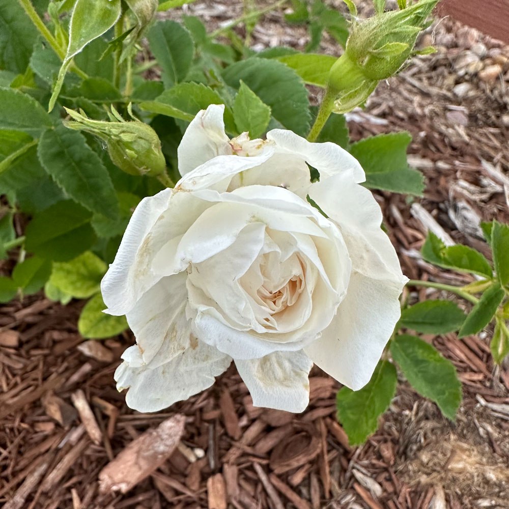 Most beautiful and refined blooms of ivory-white tinged with yellow. Starting as sweet cupped buds, they open flat and are well filled with petals, giving a prefect camellia-like effect. There is a strong and very delicious fragrance. It is thornless with pale green leaves. Gorgeous!