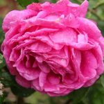 Madame Dubost is one beautiful Bourbon rose and a true showpiece in the garden. Clusters of light pink blossoms with deep pink centers reliably recur all season and are packed with petals and an alluring fragrance. Foliage is an attractive green grey.