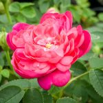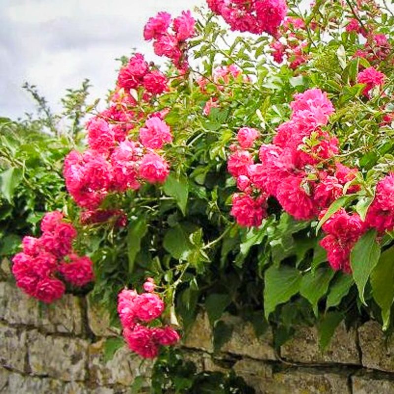 A miniature Centifolia with deep pink to violet double blooms with a paler pink center and button eye. Fragrant, 1½ inch blooms in early summer. The bush forms a dense 3 feet tall by 3 feet wide mound with small, dark green leaves, attractive in the landscape even when not blooming. I was elated to find it growing in the historically reconstructed gardens at Mt. Vernon. Apparently a favorite of President Washington.