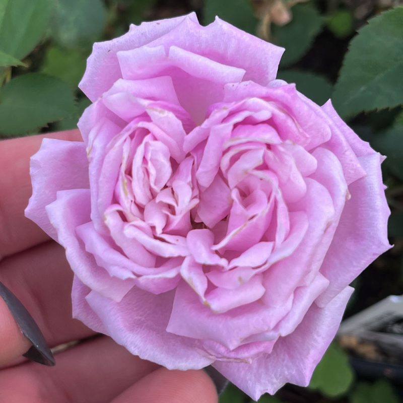 This Hybrid China is a compact grower with attractive, loose, and double flowers in a soft lavender-pink color.  Blooms emerge consistently throughout the season, either singly or in small clusters.  The shrub itself is attractive and sturdy with nice green-gray leaves and a spreading growth habit.  Great in mass planting for borders or in a cottage garden.  Will need some winter protection.