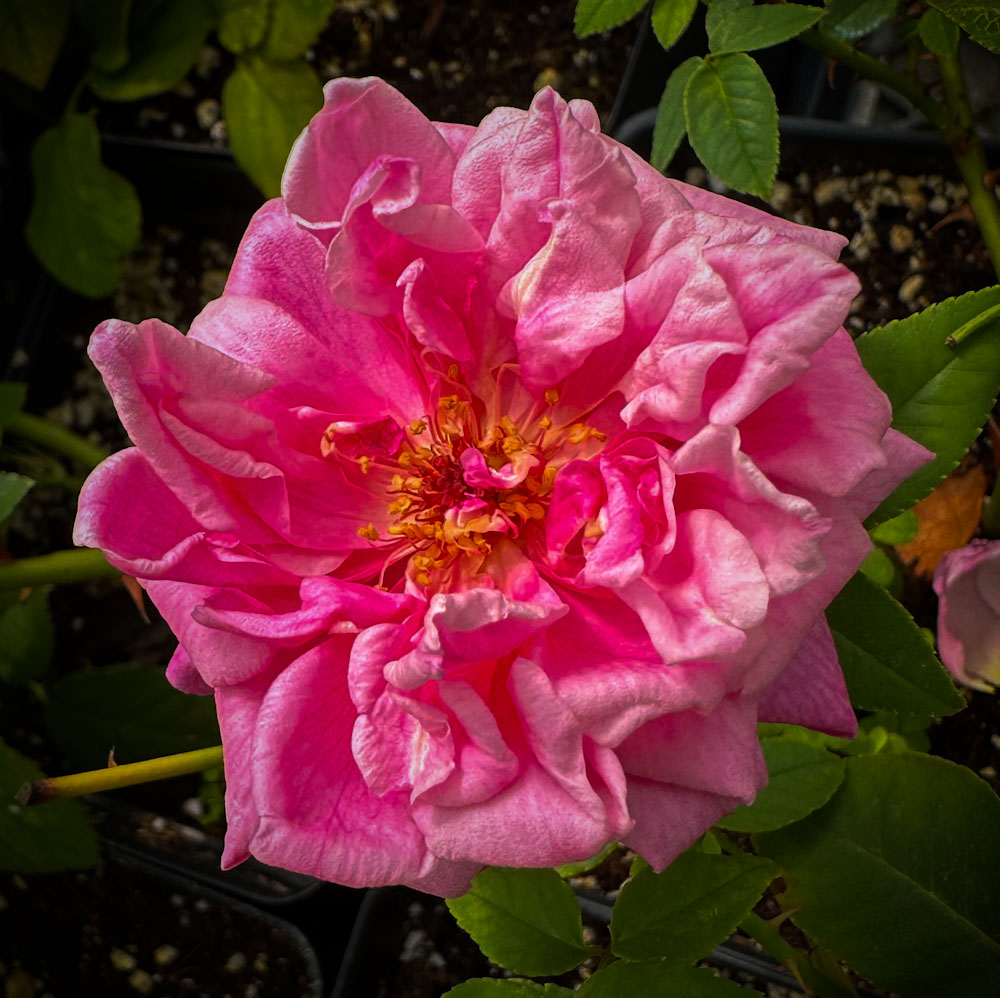 Loosely packed pink blooms with a lighter silvery reverse create a swirl of color on this classic China rose.  Blooms are accented by a moderate tea scent.  The shrub is manageable and attractively covered in rich blue green foliage.  This rose definitely will need winter protection in colder climates.  Name after Sicily’s Mt. Vesuvius volcano.