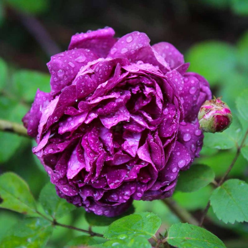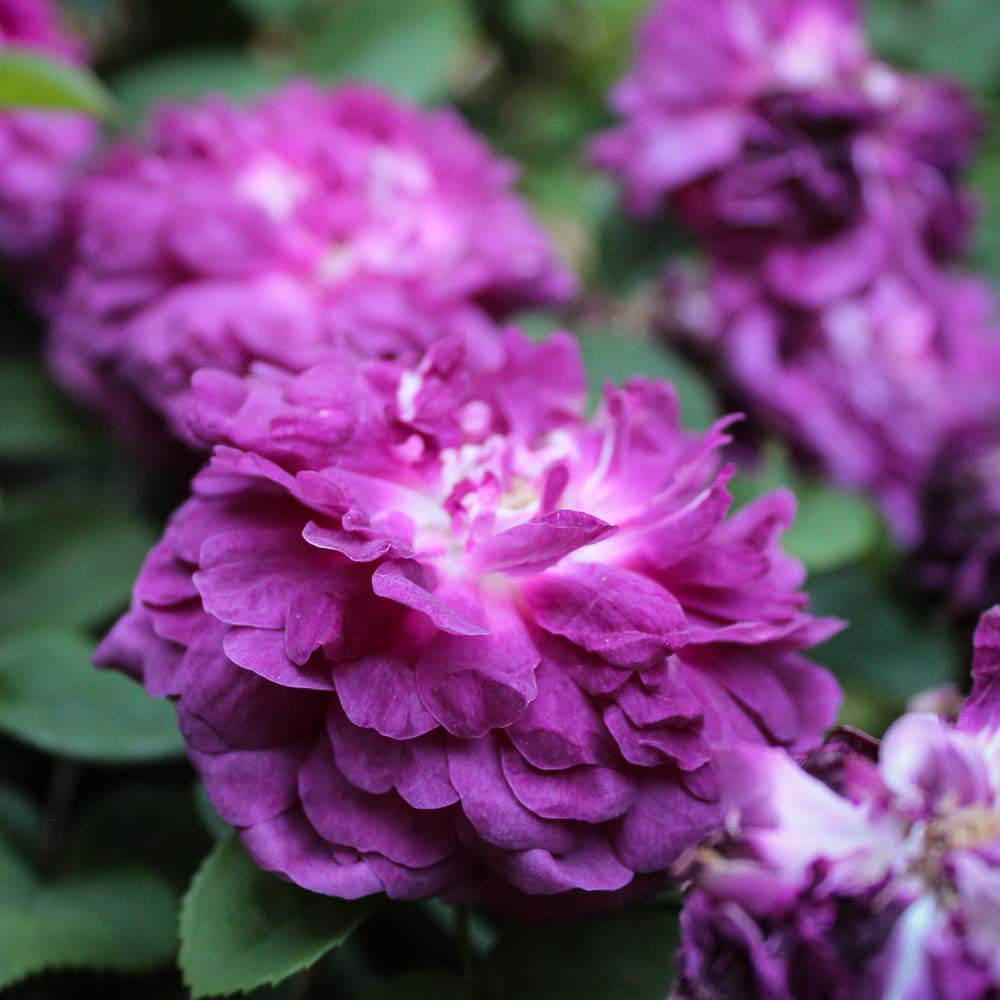 Lightly fragrant, 2 to 3 inch blooms are mauve, then open fully to a rich purple shade. Once blooming in early summer. Shrub forms an arching mound up to 5 feet high and 4 feet wide with dark green leaves and few thorns. Generous feeding produces the best results.