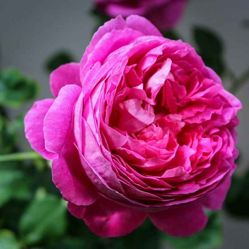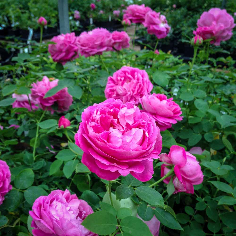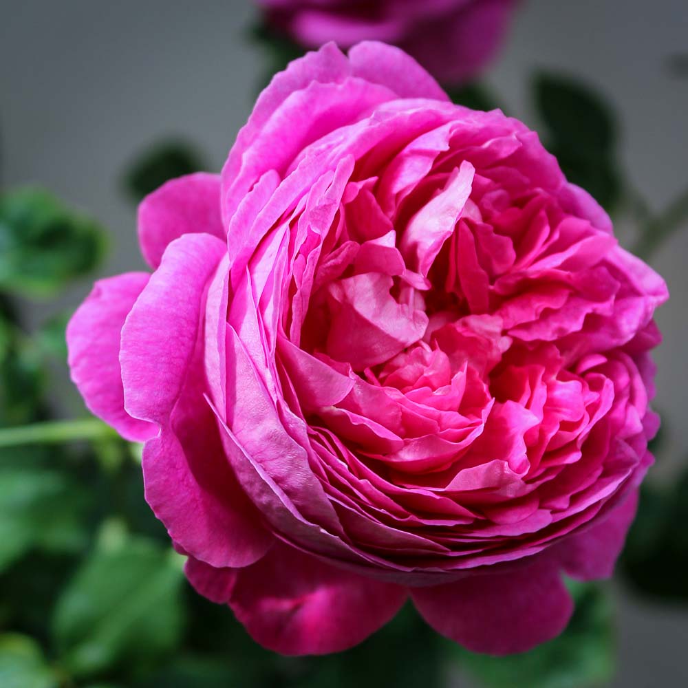 Huge, very full, rose-pink flowers (5 inches in diameter) on a sturdy, medium height bush reaching 5 to 6 feet. A fragrant Victorian favorite with glossy large green leaves and repeat bloom in the fall.