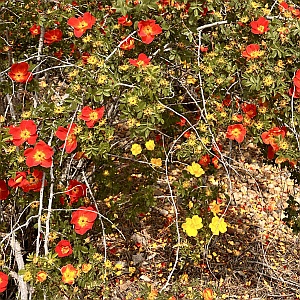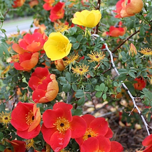 One of my favorite roses, Rosa foetida bicolor (Austrian Copper) takes the sport and reversion relationship a step further. Austrian Copper grows with two distinct sets of genetics in the same plant. This creates a number of unusual expressions. Sometimes, you will see pure copper red blooms covering the plant. Sometimes, you’ll see the pure yellow blooms of the parent plant Rosa foetida. On occasion, you’ll see both. Not only on the same plant, but in the same bloom.